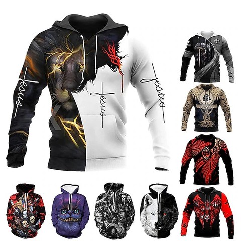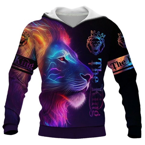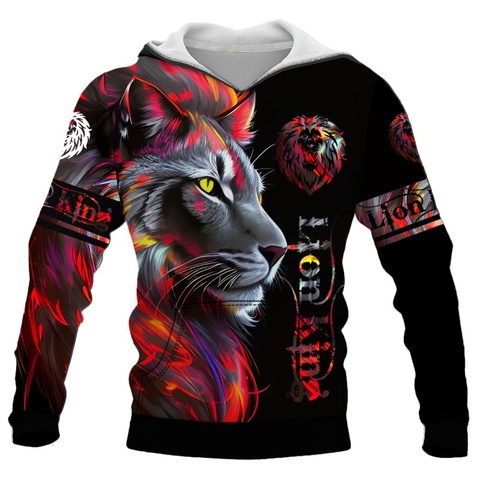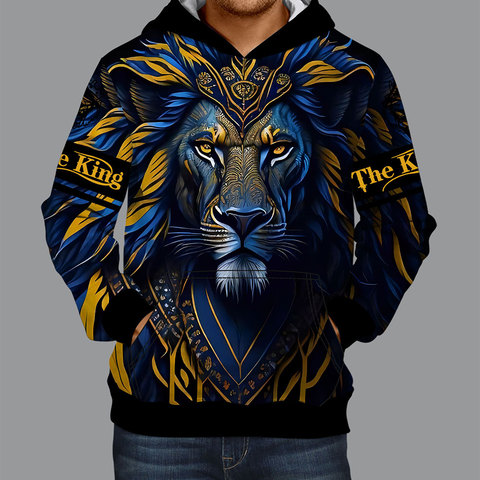 All'ingrosso felpe da uomo Vintage autunno inverno 3D Digital Lion stampato con cappuccio LOGO personalizzato 100% materiale in poliestere