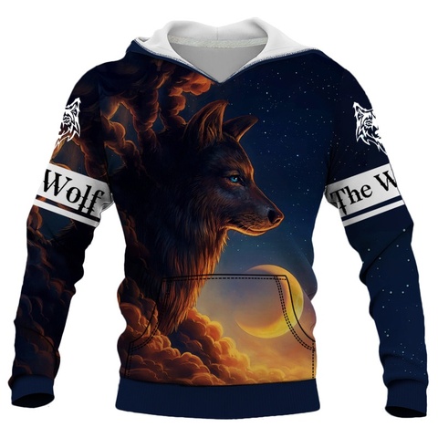Felpe da uomo Vintage autunno inverno 3D Digital Animal Wolf stampate felpe 100% poliestere LOGO personalizzato all'ingrosso
